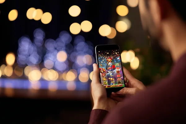 A player using their smartphone during a festive local event, representing PHILPOWER’s fully mobile-friendly casino.